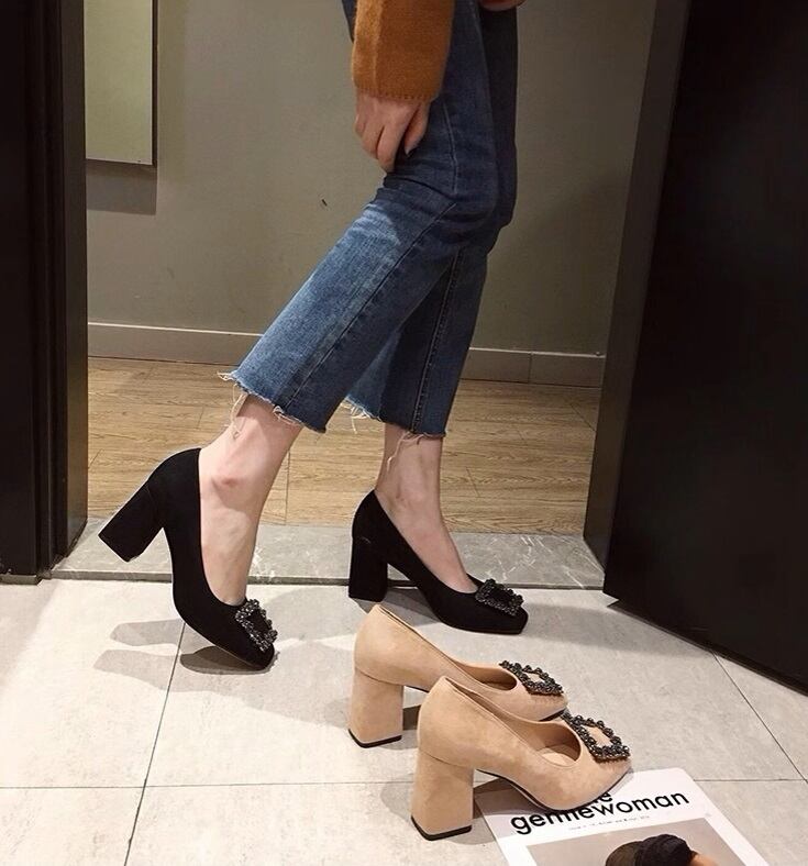 スクエアビジューがフェミニンなヒールパンプスです。高すぎないチャンキーヒールでとても歩きやすいです。秋冬のコーディネートのアクセントにおすすめです。
