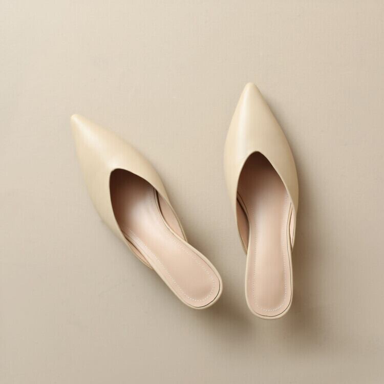 ポインテッドトゥ デザインミュール ベージュ SH00066