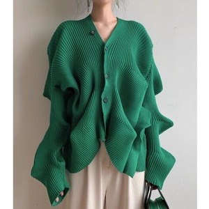 ウエーブシルエット ニットカーディガン グリーン NI00111
