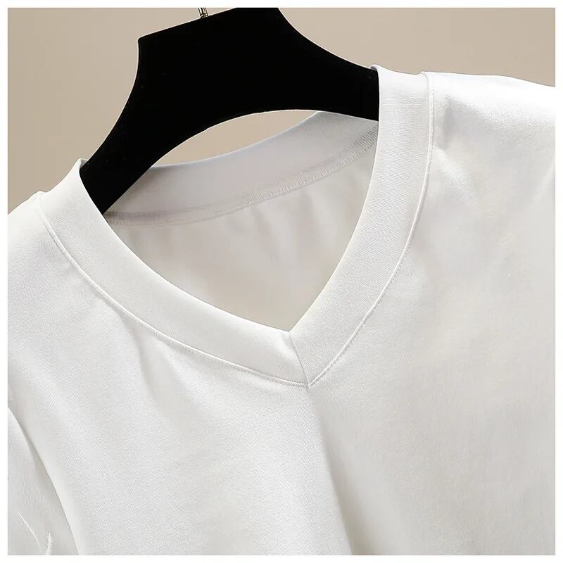 フェザースリーブ VネックTシャツ ホワイト NI00057