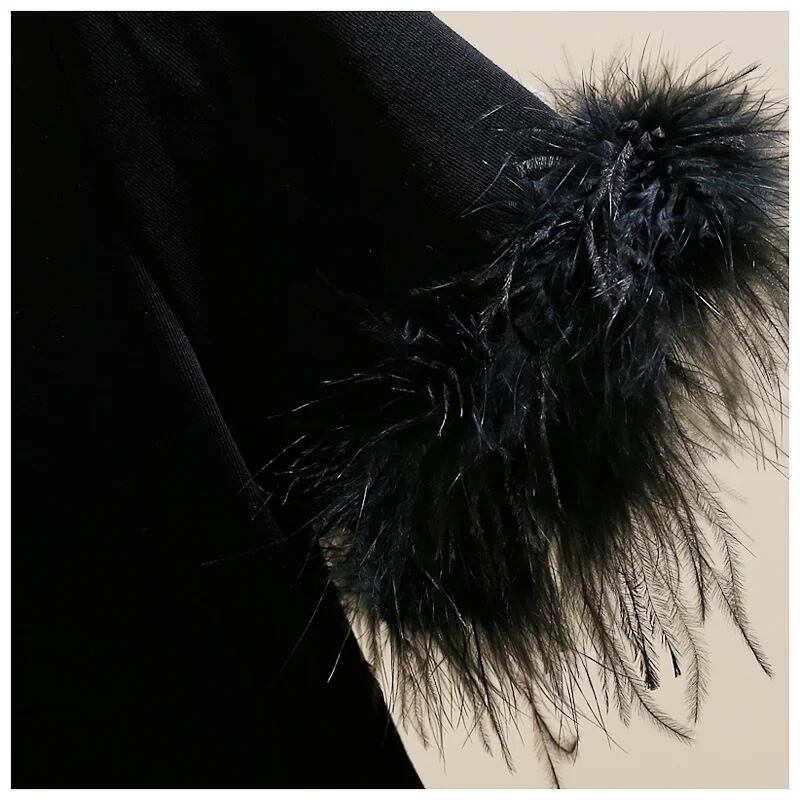 フェザースリーブ VネックTシャツ ブラック NI00056