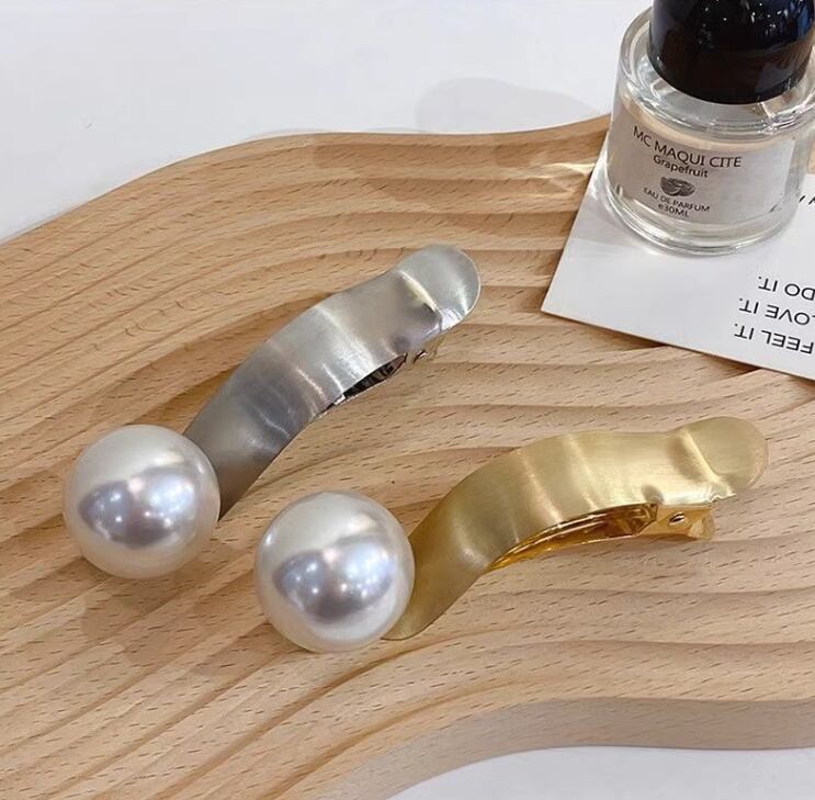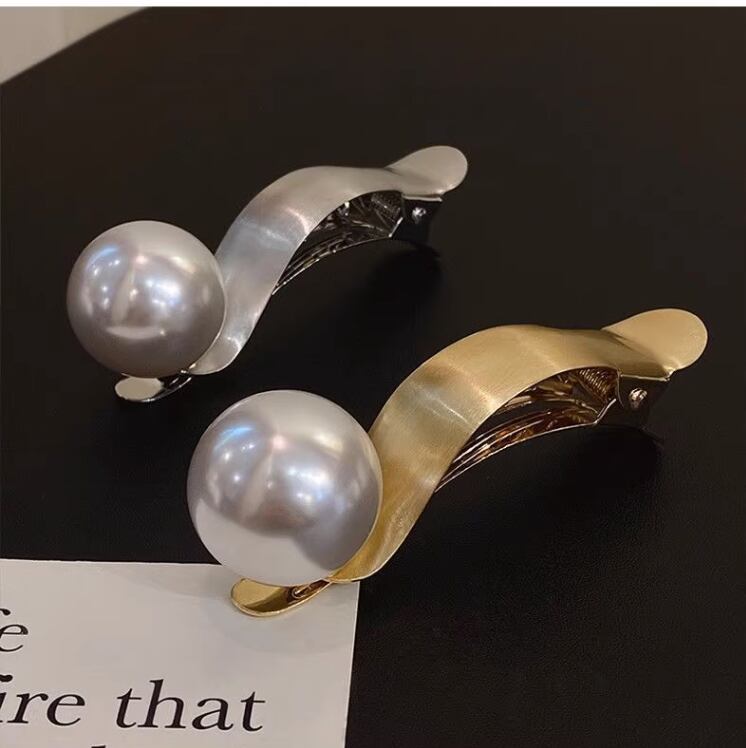 パールのヘアクリップ、ゴールドとシルバーの2個セットです。1個ずつでも、セットでも、様々なヘアアレンジが楽しめます。フェミニン、エレガントなスタイルのアクセントにおすすめです。