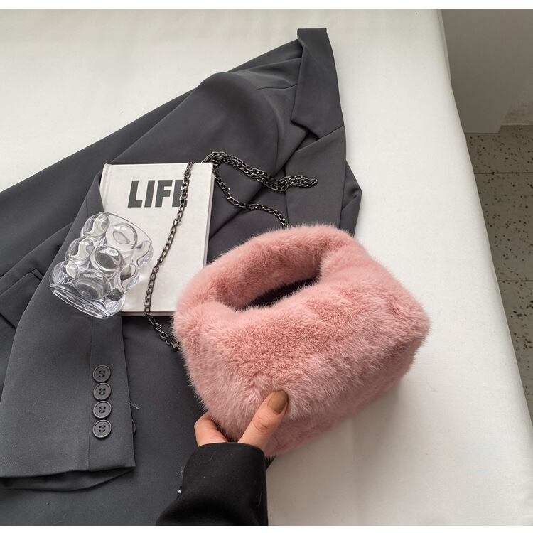 エコファー チェーンハンドバッグ モーブピンク BA00296