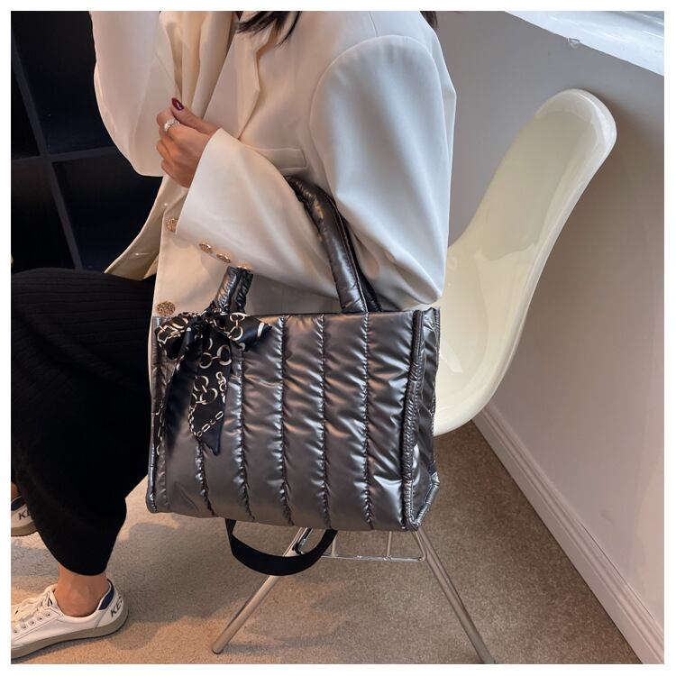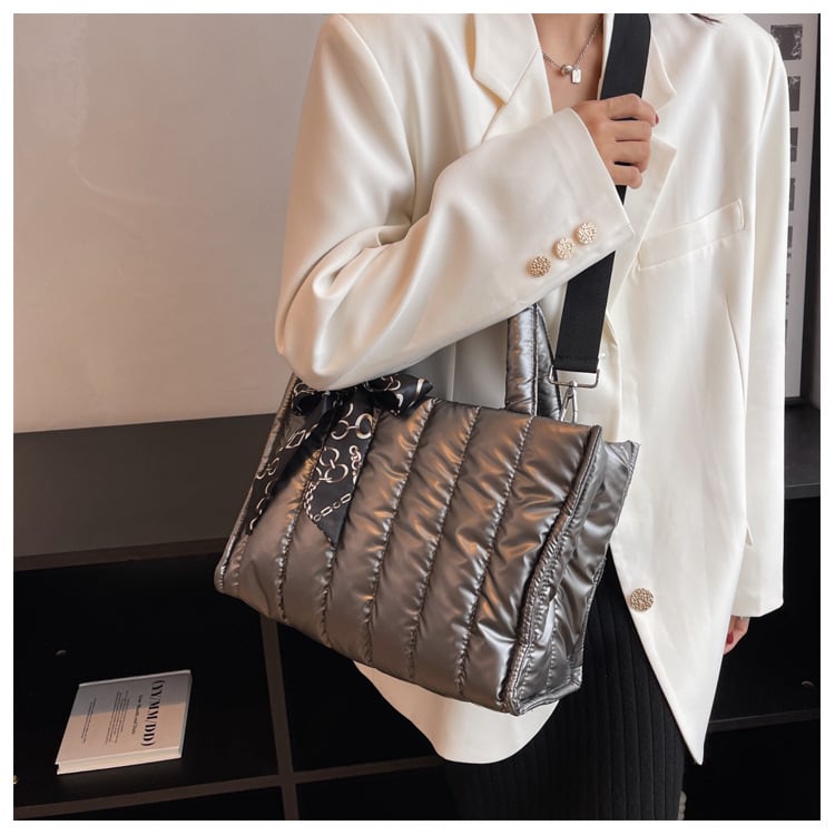 スカーフリボン キルティングトートバッグ シルバー BA00302