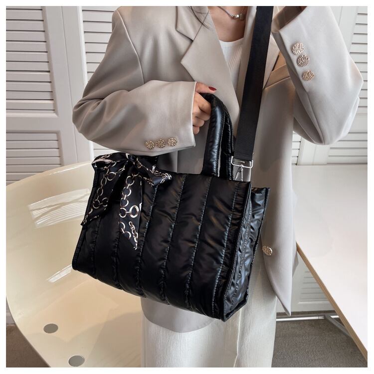 スカーフリボン キルティングトートバッグ ブラック BA00304