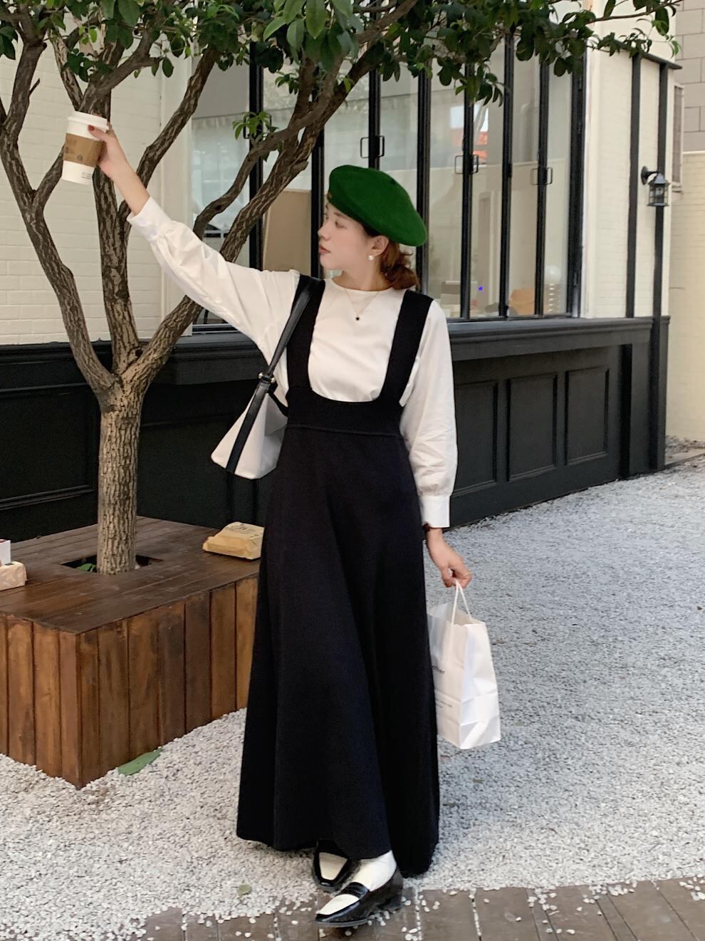 クラシカルなカットソーとジャンパースカートのセットアップです。ハイウエストの効果でメリハリのあるシルエットが楽しめます。単品でも幅広いスタイリングに活躍する使いやすいアイテムです。