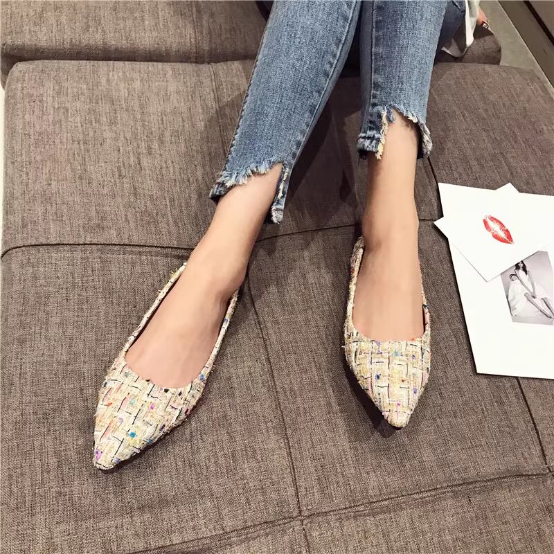 マルチカラーツイードがフェミニンなフラットパンプスです。デニムスタイルもエレガントにまとまります。柔らかく歩きやすいのも◎、1年を通してお使いいただけます。