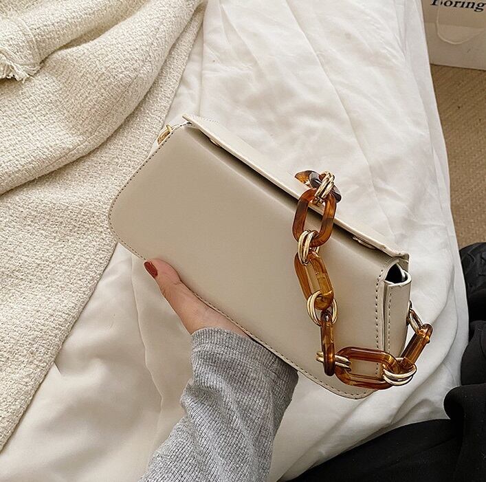 スタイリッシュなフォルムのショルダーバッグです。チェーンをアレンジしたショルダーストラップもアクセント。1年を通してハイセンスなデザインで幅広いコーデを引き立てます。