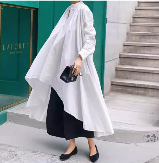 アシンメトリー スタンドカラーロングシャツ ホワイト BL00106