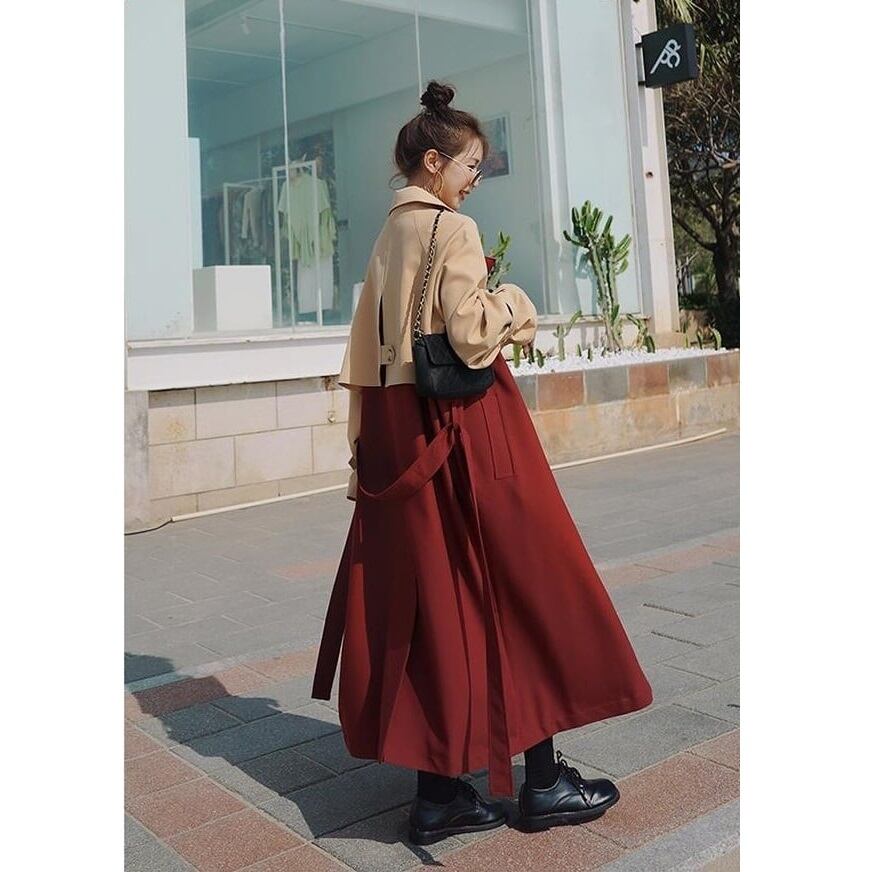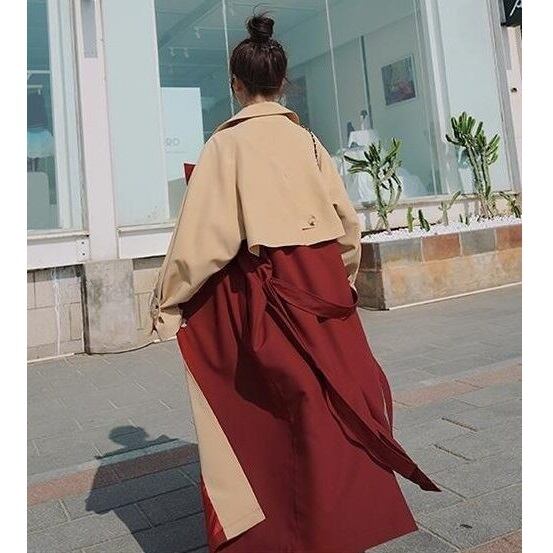 バイカラーブロック トレンチコート ベージュ/バーガンディー CT00009