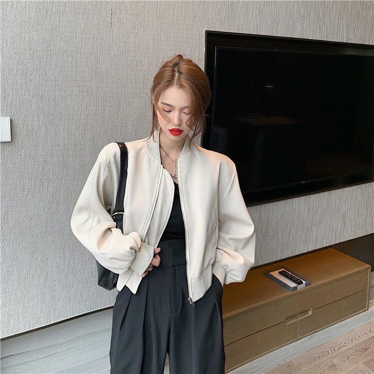 ファスナー付きのショートジャケットです。旬のデザインで、フレッシュな印象に仕上がります。ボトムスを選ばず、幅広いコーディネートによく似合います。