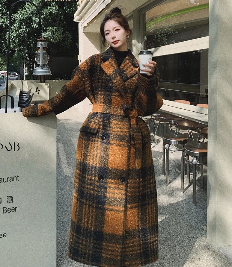大きめチェックがスタイリッシュなチェスターコートです。ウエストベルトでシルエットの調整が楽しめます。ダブルボタンやオーバーサイズのシルエットなど、1枚でインパクトのあるスタイルが完成します。秋冬のムードにぴったりのスタイリッシュなコートです。