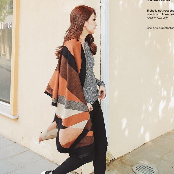 ジオメトリックストール ワイドマフラー オレンジ/ブラック WT00003