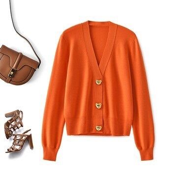テディベアボタン ニットカーディガン オレンジ NI00135