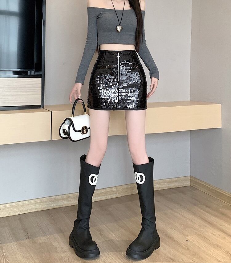 スパンコール タイトミニスカート ブラック SK00083
