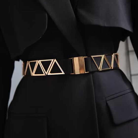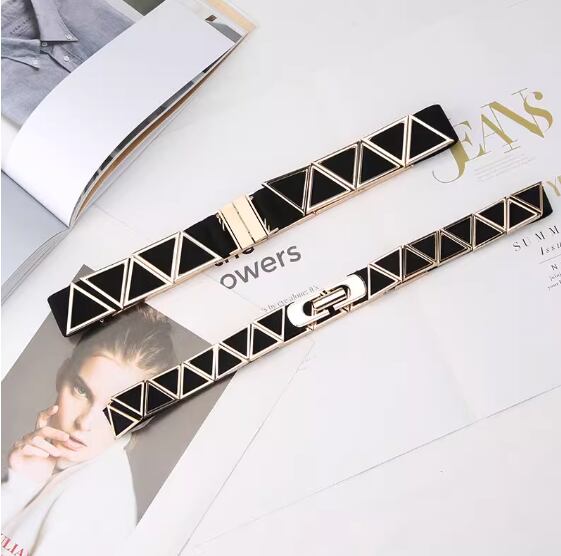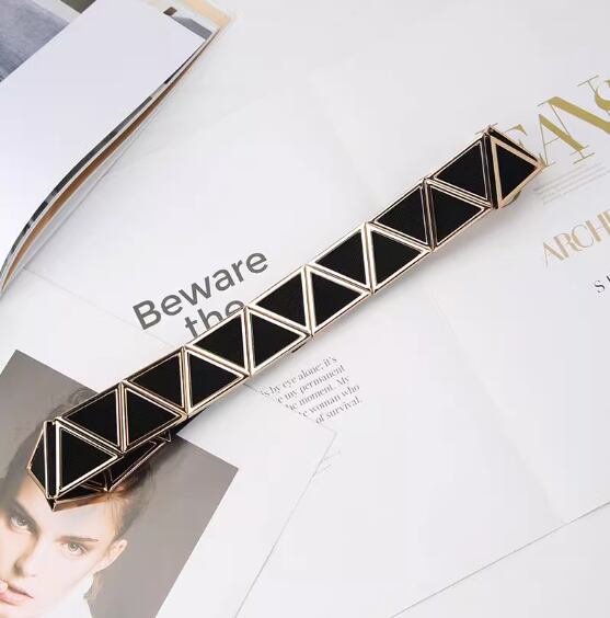 ジオメトリックパターン デザインベルト ブラック/ゴールド BT00026