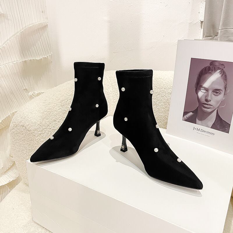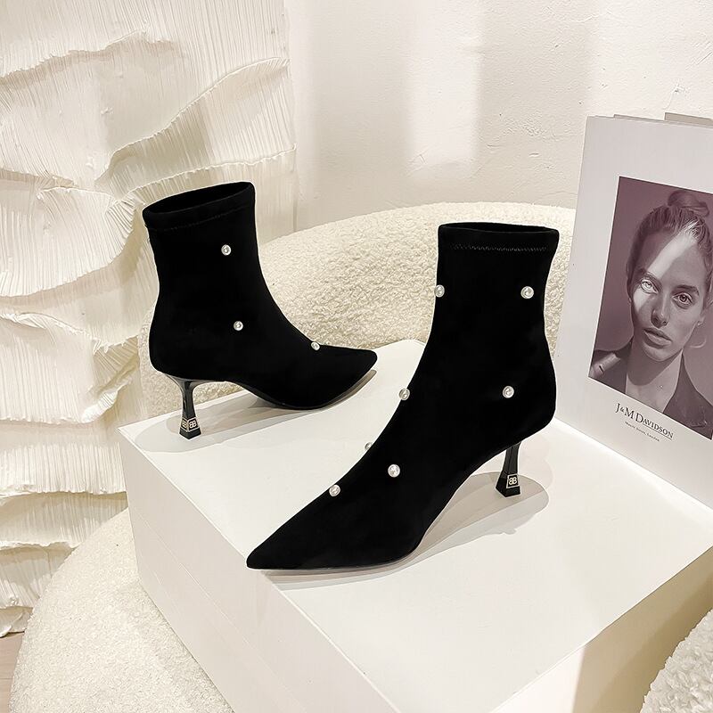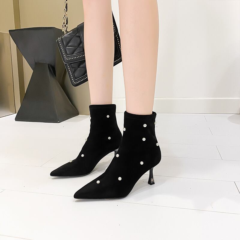 パールデコレーション ストレッチショートブーツ ブラック BU00030
