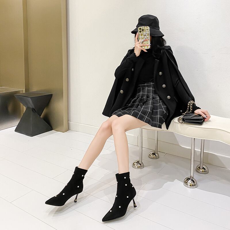 パールデコレーションがフェミニンなショートブーツです。ストレッチ素材と4cmヒールで歩きやすさも◎。お手入れが楽なエコレザーです。スタイルを選ばず、幅広い秋冬のコーデのアクセントになる、おすすめのショートブーツです。