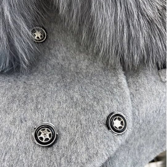 襟と袖のエコファーもふわふわで、ボタンのデザインも良かったです。