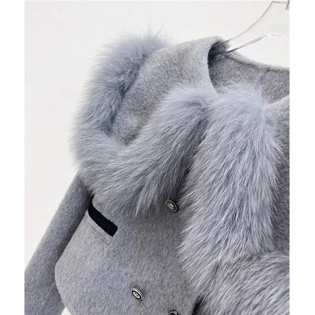 エコファーカラーダブルボタン  ショートコート グレー CT00022