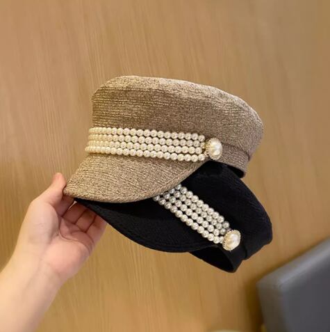 パールデコレーションがエレガントなキャスケットです。サイドとフロントのマルチパールで顔まわりが明るく見えます。デニムなどのカジュアルなスタイルからドレススタイルまで幅広いスタイルにお使いいただけます。