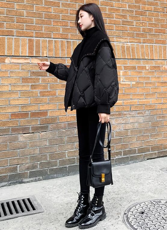ウールワイドカラー キルティングジャケット ブラック JK00045