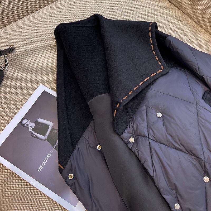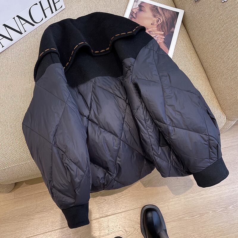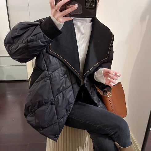 ウールの衿がポイントのキルティングジャケットです。ブラウンのステッチが入ったハイセンスなワイドカラーやひし形のキルティング、ダブルボタンなど、フェミニンなデザインです。デニムに合わせてカジュアルに、ブーツとスカートでエレガントにも、お手持ちのアイテムに合わせやすい便利なアウターです。ジャストサイズでも、オーバーサイズでも、どちらのサイズ感も楽しめる、幅広いサイズ展開です。