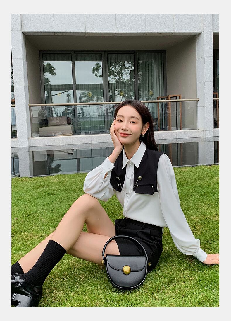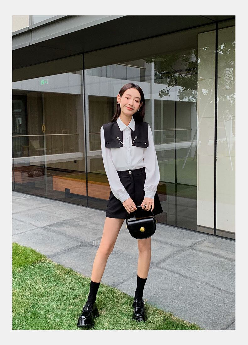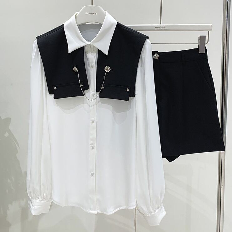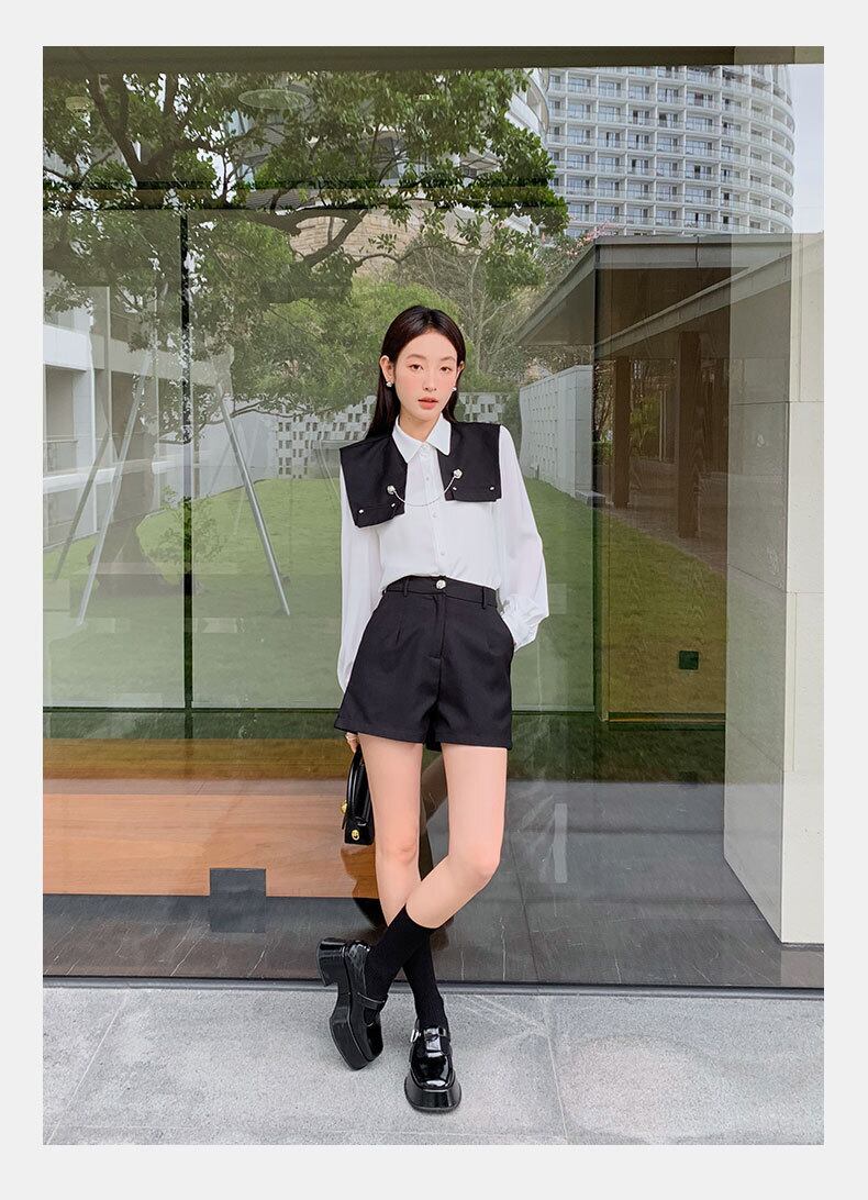 スタッズチェーン レイヤードブラウス+ショートパンツ ホワイト/ブラック SU00041