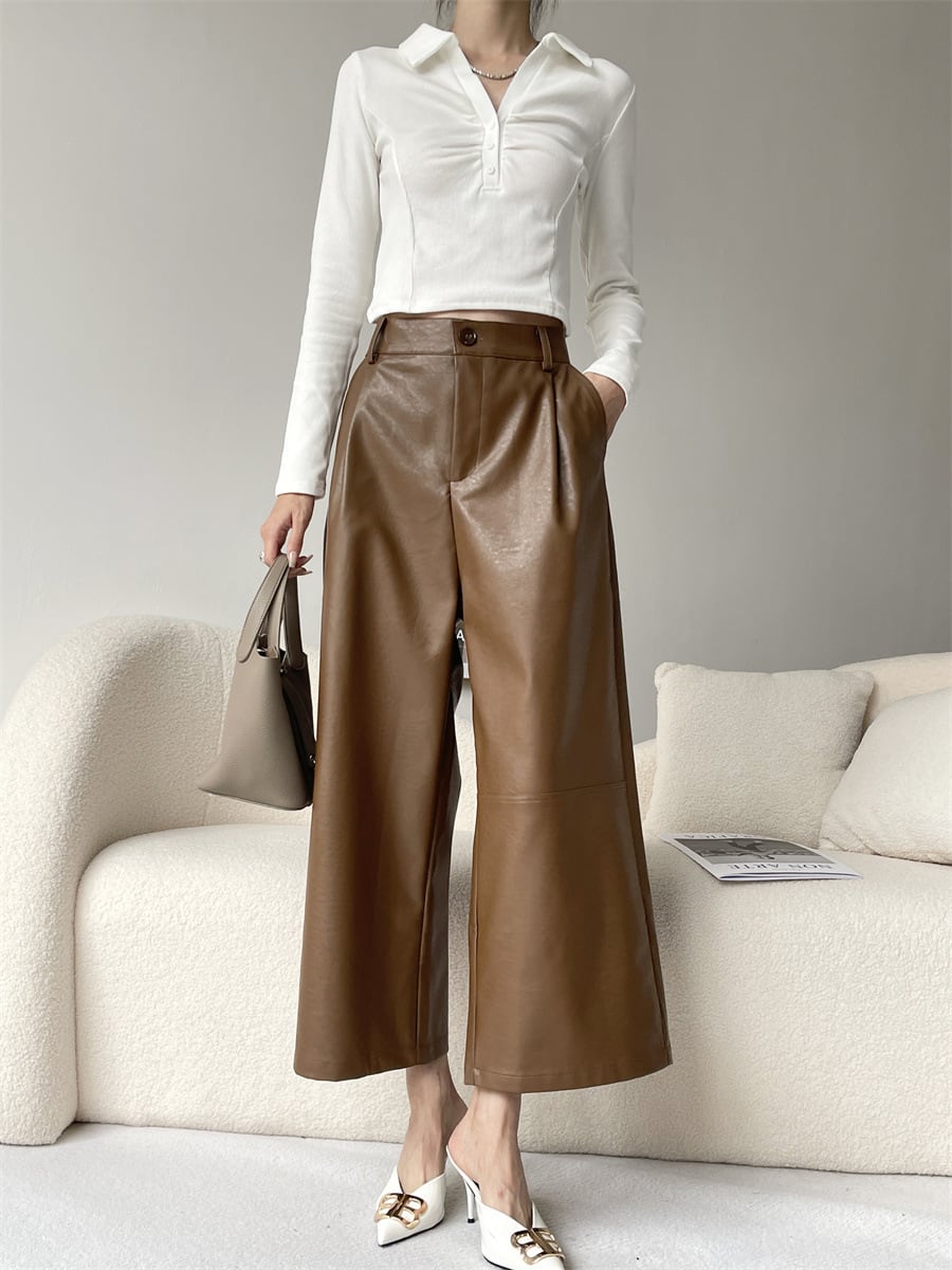 エコレザー ワイドレッグパンツ ブラウン PT00036