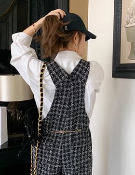 チェックツイード オーバーオール(チェーンベルト付き)グレー AO00016