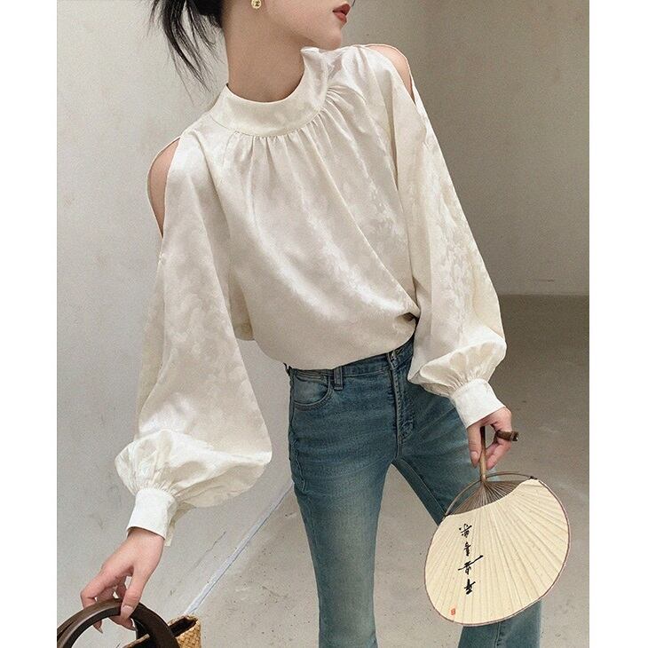 カットアウトスリーブ スタンドカラーブラウス アイボリー BL00101
