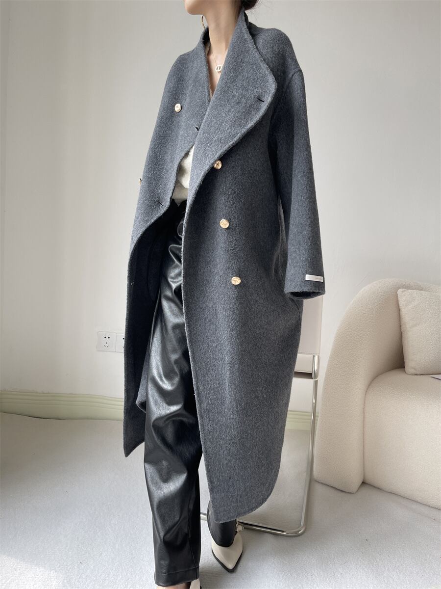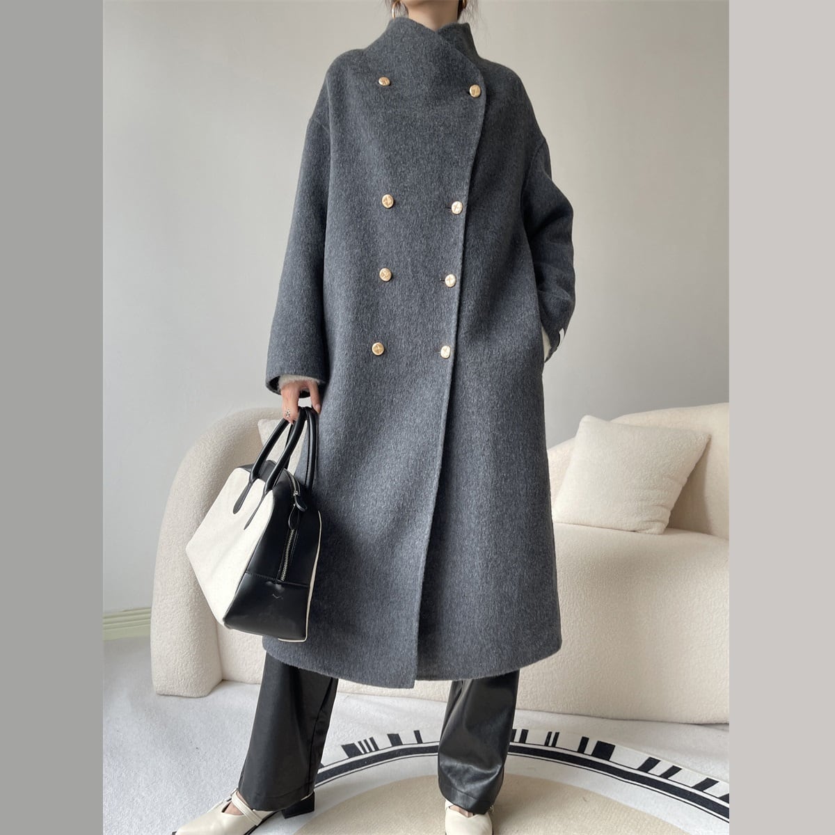 ダブルボタン ウールロングコート ダークグレー CT00039