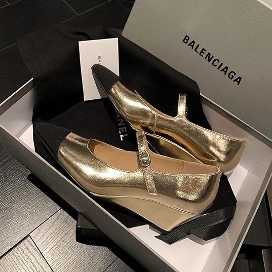 メリージェーン コンビネーション ウェッジソールパンプス ゴールド/ブラック SH00072