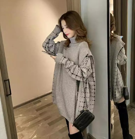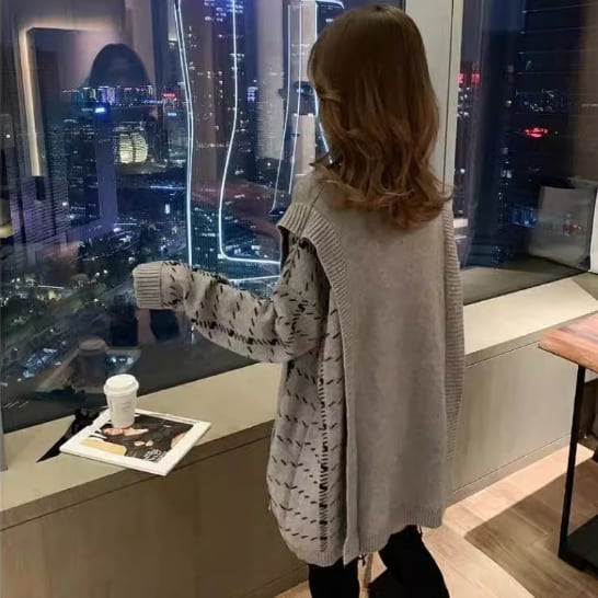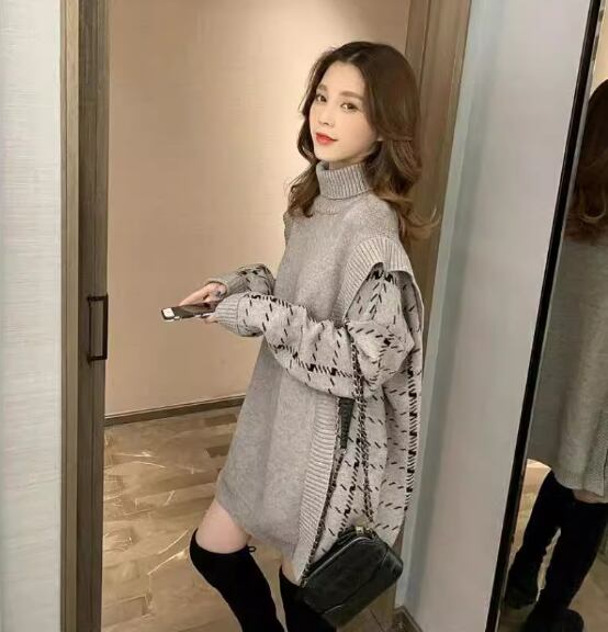 デザインブロッキング ロングニット・ニットワンピース グレー NI00179
