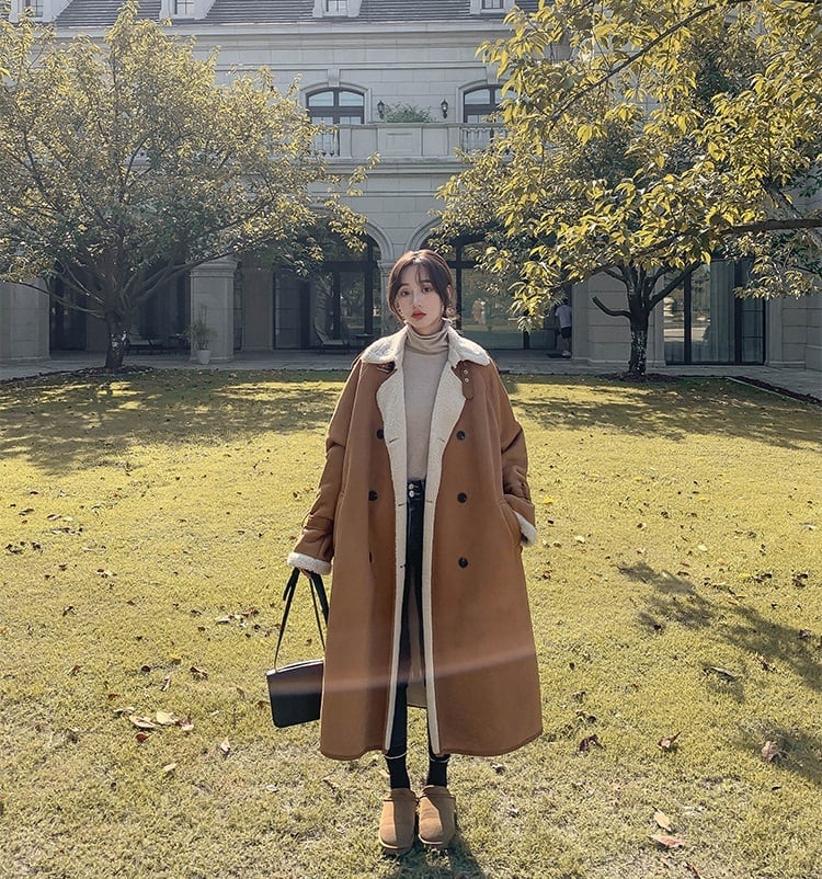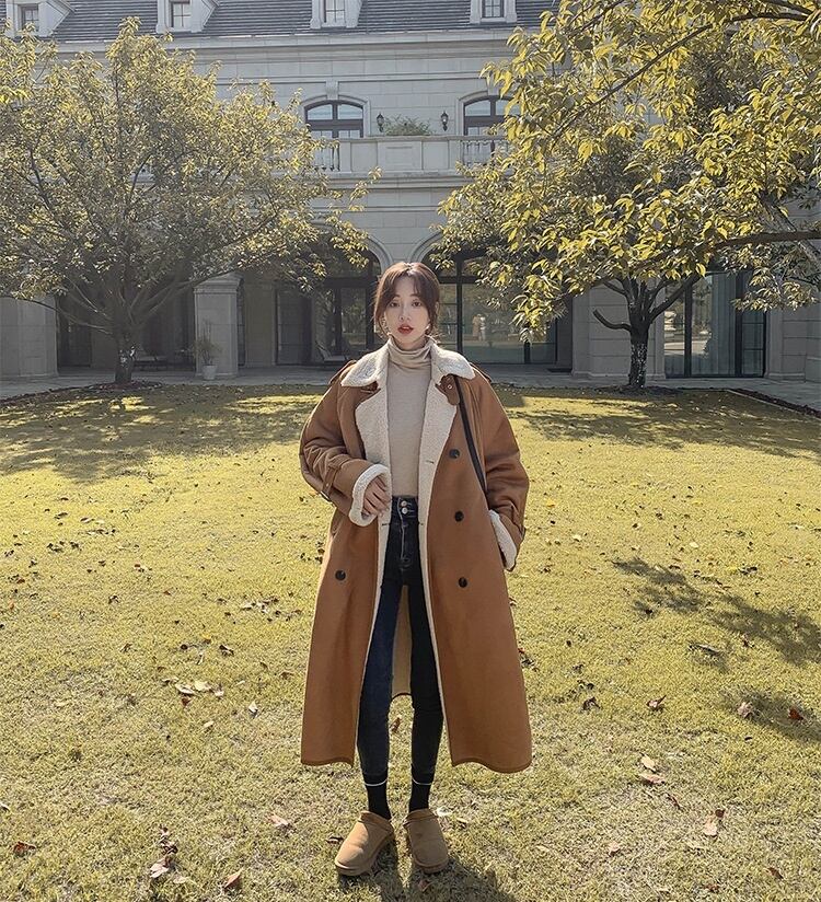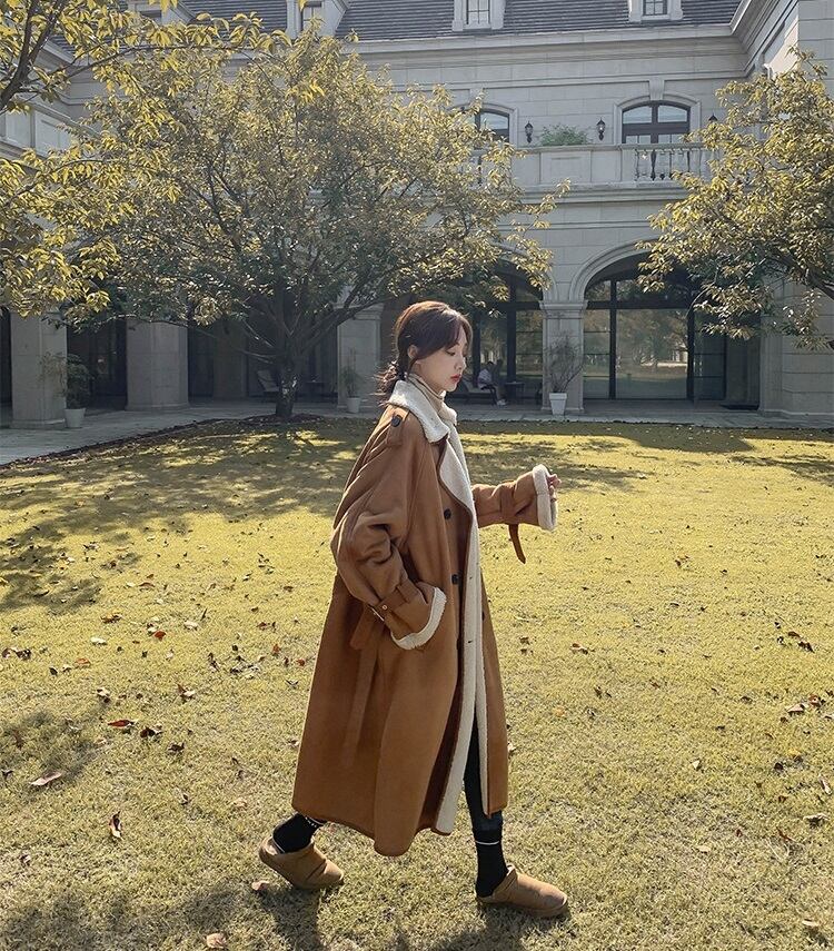 トレンド感あふれるエコムートンのロングコートです。ソフトなカラーリングと質感でフェミニンなイメージにまとまります。ボトムスを選ばず、さらっと羽織るだけでハイセンスなスタイルが完成します。袖口や襟元のベルトなど細かいところまでスタイリッシュなデザインです。