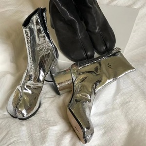 リアルレザー タビブーツ・スプリットトゥヒールブーツ メタリックシルバー SH00148