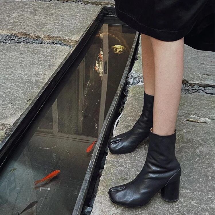 リアルレザー タビブーツ・スプリットトゥヒールブーツ ブラック SH00147
