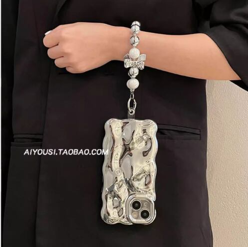 ハンド+ボディストラップ付き フルイドボディ iPhoneケース シルバー TA00013