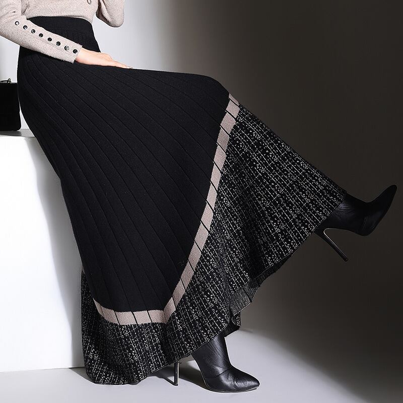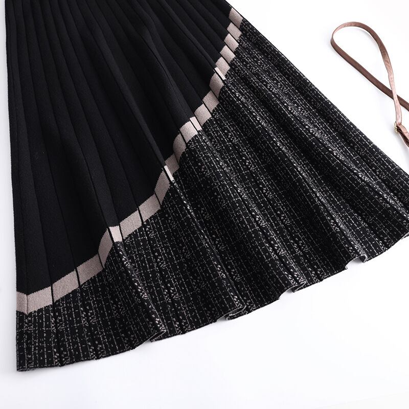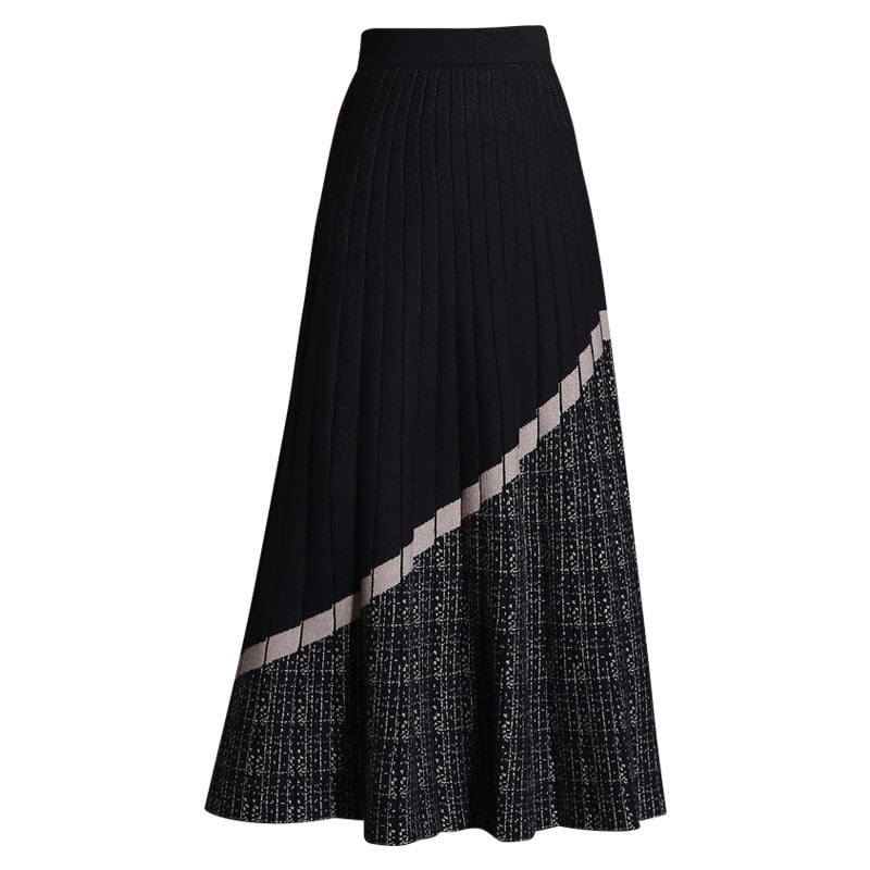 アシンメトリーストリング ニットプリーツスカート ブラック SK00128