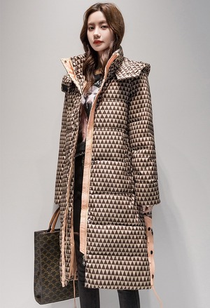 ジオメトリックプリント ロングダウンコート ブラウン/ピンクベージュ CT00060