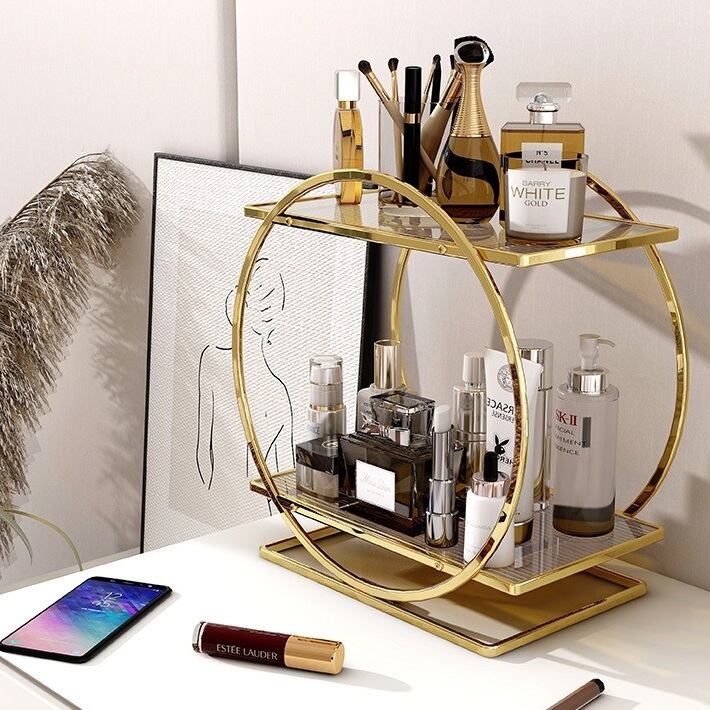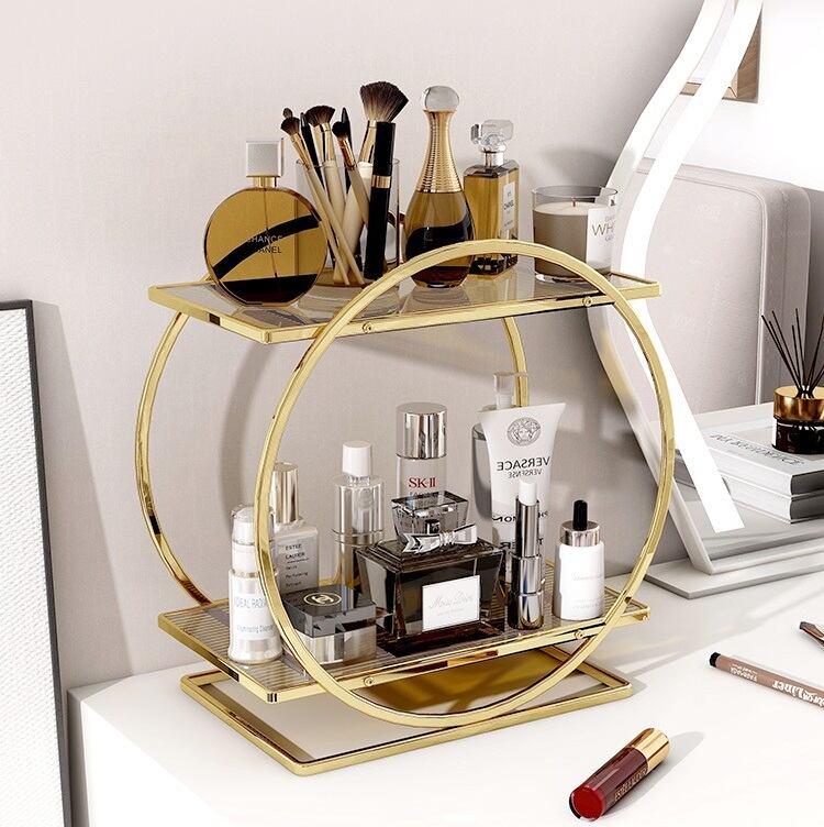 サークルに2段のアクリルパネルを組み込んだディスプレイラックです。時計やジュエリー、キーホルダー入れ、化粧品や香水を入れたり、幅広い使い方ができます。アクキーやアクスタなど、推しグッズを収納する推し活収納にもおすすめです。大切なアイテムを飾りながら、すっきり収納できます。