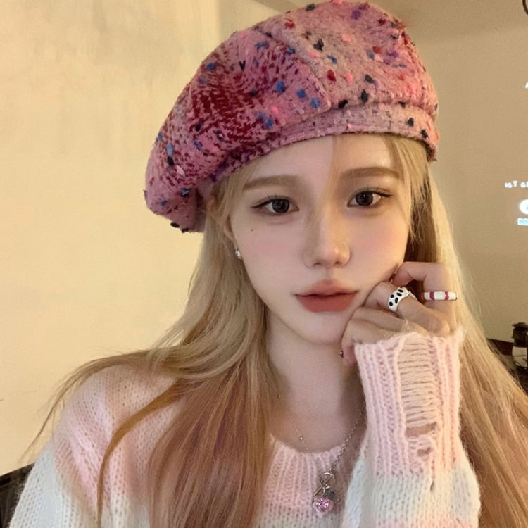 コンビネーションチェック ウールベレー帽 ピンクミックス BO00041
