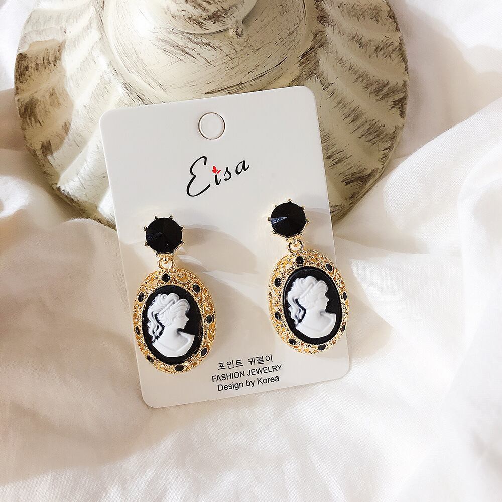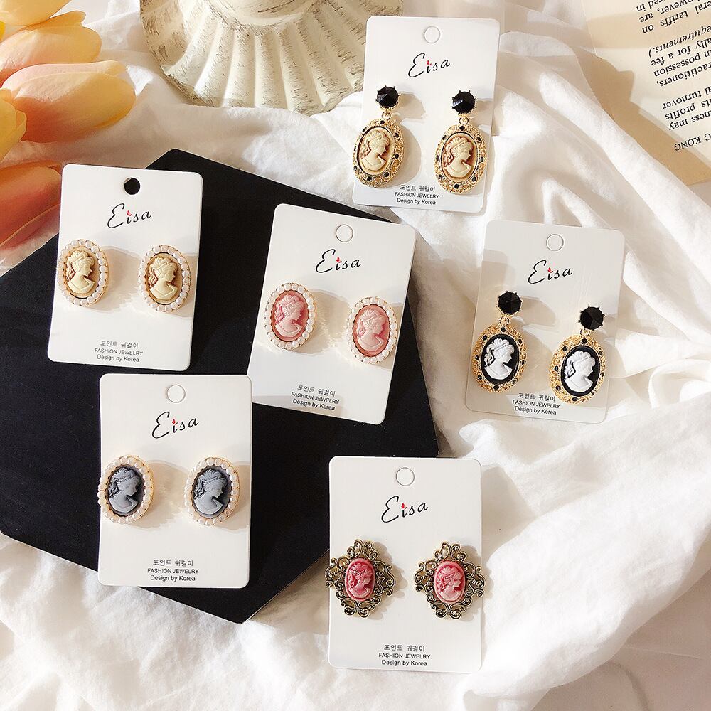 カメオをパヴェクリスタルでデコレーションした、エレガントなピアスです。アンティークのような美しいチャームがアクセント。スタッズのブラックが入ることで、ゴージャスになりすぎず落ち着いた雰囲気に仕上がります。シンプルなスタイリングに合わせたい、主役級アイテムです。