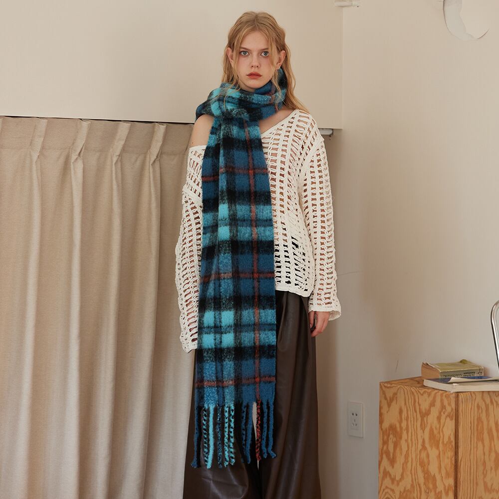 ビビッドなカラーリングがスタイリッシュなタータンチェックのロングマフラーです。ヴィヴィッドカラーがアクセントとなり、ダークカラーが多くなりがちな冬のスタイルを温かく彩ります。元気の出る、明るいカラーコンビネーションが魅力の3色展開です。敏感肌の方でも安心のチクチクしない、お肌に優しいソフトな質感です◎
