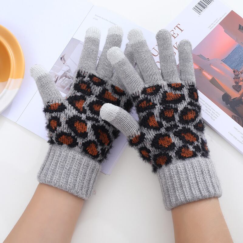 レオパード ニットグローブ・ウール手袋(スマホ操作OK)グレー FK00042