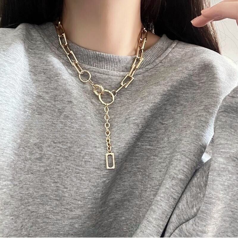 リングバックル スクエアチェーンネックレス ゴールド NE00025