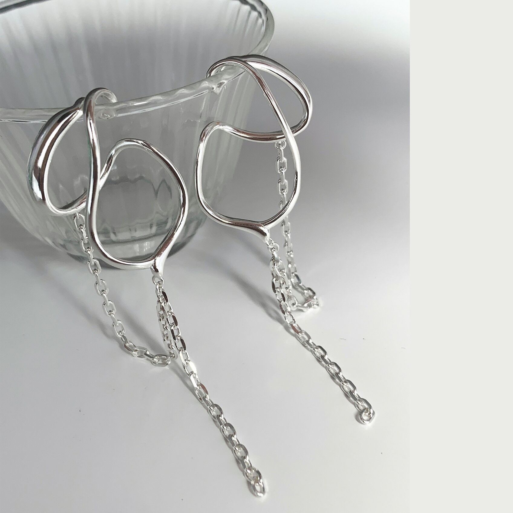 ドロップチェーン デザインイヤーカフ(イヤークリップ)シルバー PR00133