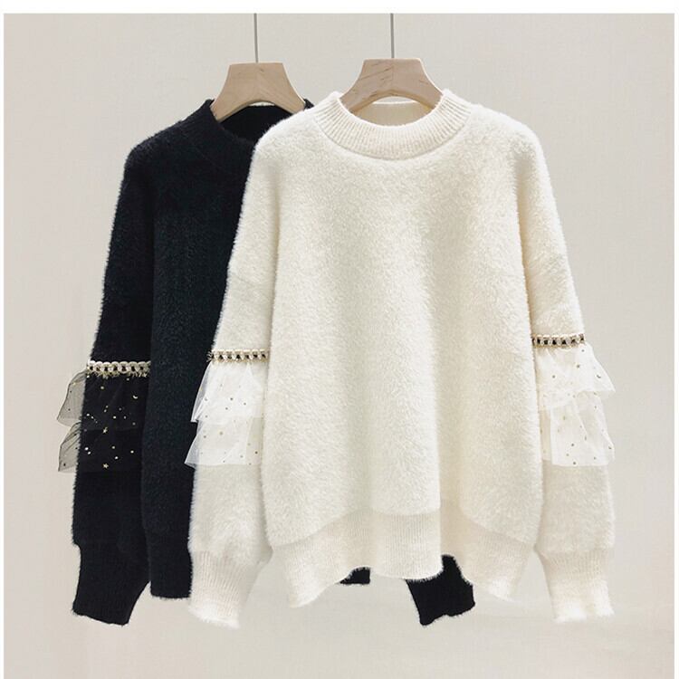 袖にスパンコール入りのチュールををアレンジしたシャギートップスです。ラグラン袖のライニングもアクセントになっています。1枚でインパクトのあるコーディネートが完成します。パンツでもスカートでも合わせやすい、ハイセンスなデザインです。