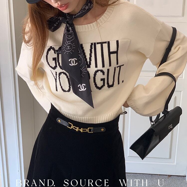 ポップなレタリングの入ったシンプルなニットセーターです。スタイリッシュなデザインだけでなく、ゴキゲンに過ごせそうなレタリングがポイントです。ロゴ入りスウェットのように、カジュアルにも、エレガントスタイルやマニッシュなスタイルの外しのアイテムとしてもオススメです。