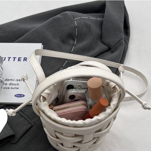 エコレザーウーブン バケットバッグ・ポシェット ホワイト BA00413
